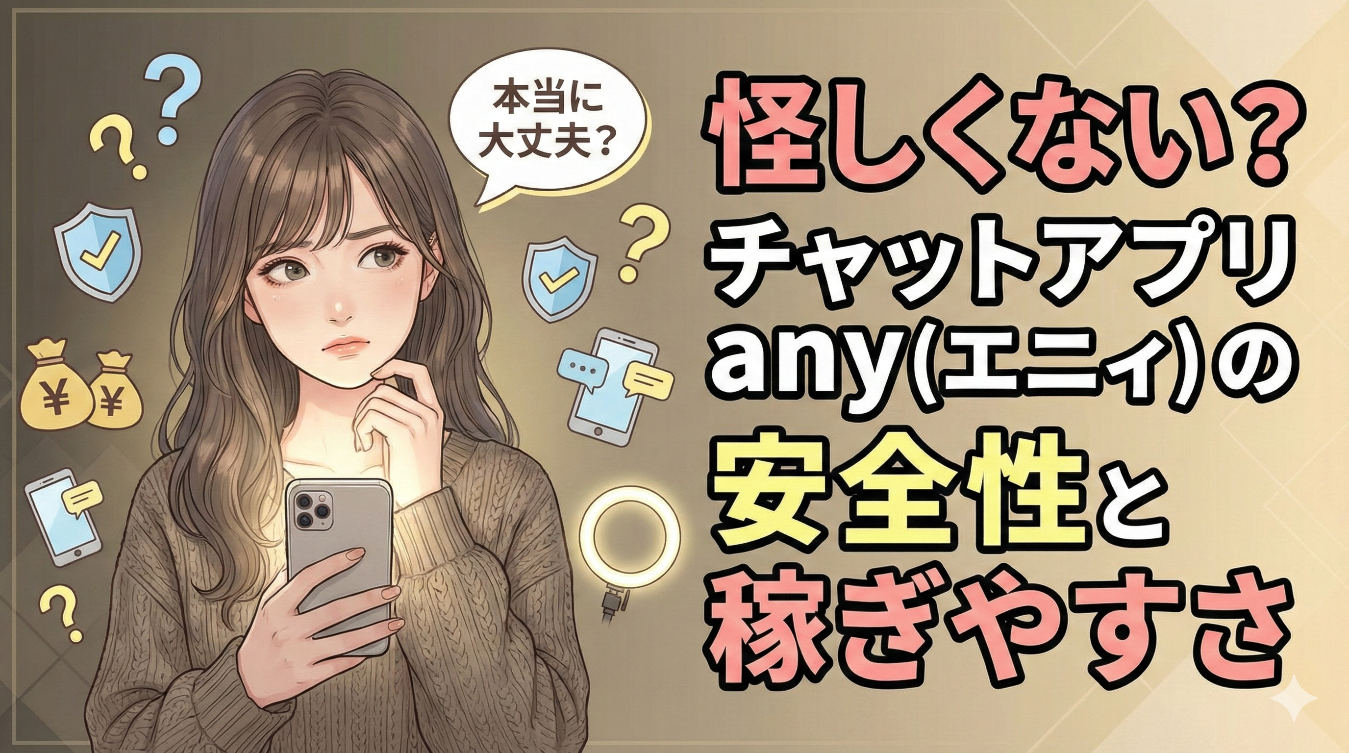 画面に映る範囲を工夫したり、可愛いルームウェアを着てみたりと、見せ方を工夫するのもテクニックの一つ。自分の「見せても良い範囲」を決めて、賢く稼いでいきましょう。
